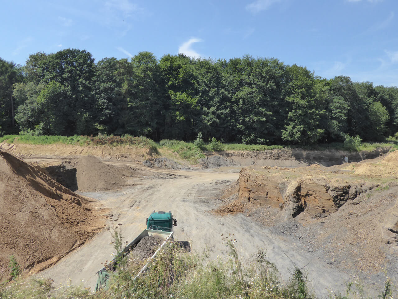 Wir erarbeiten in diesem Zusammenhang die erforderlichen Antragsunterlagen (Abgrabungsantrag, Umweltverträglichkeitsstudie, Artenschutzbeitrag, Landschaftspflegerischer Begleitplan, Waldumwandlungsanträge) und koordinieren die weiteren Fachbeiträge, z. B. hydrogeologische Gutachten.