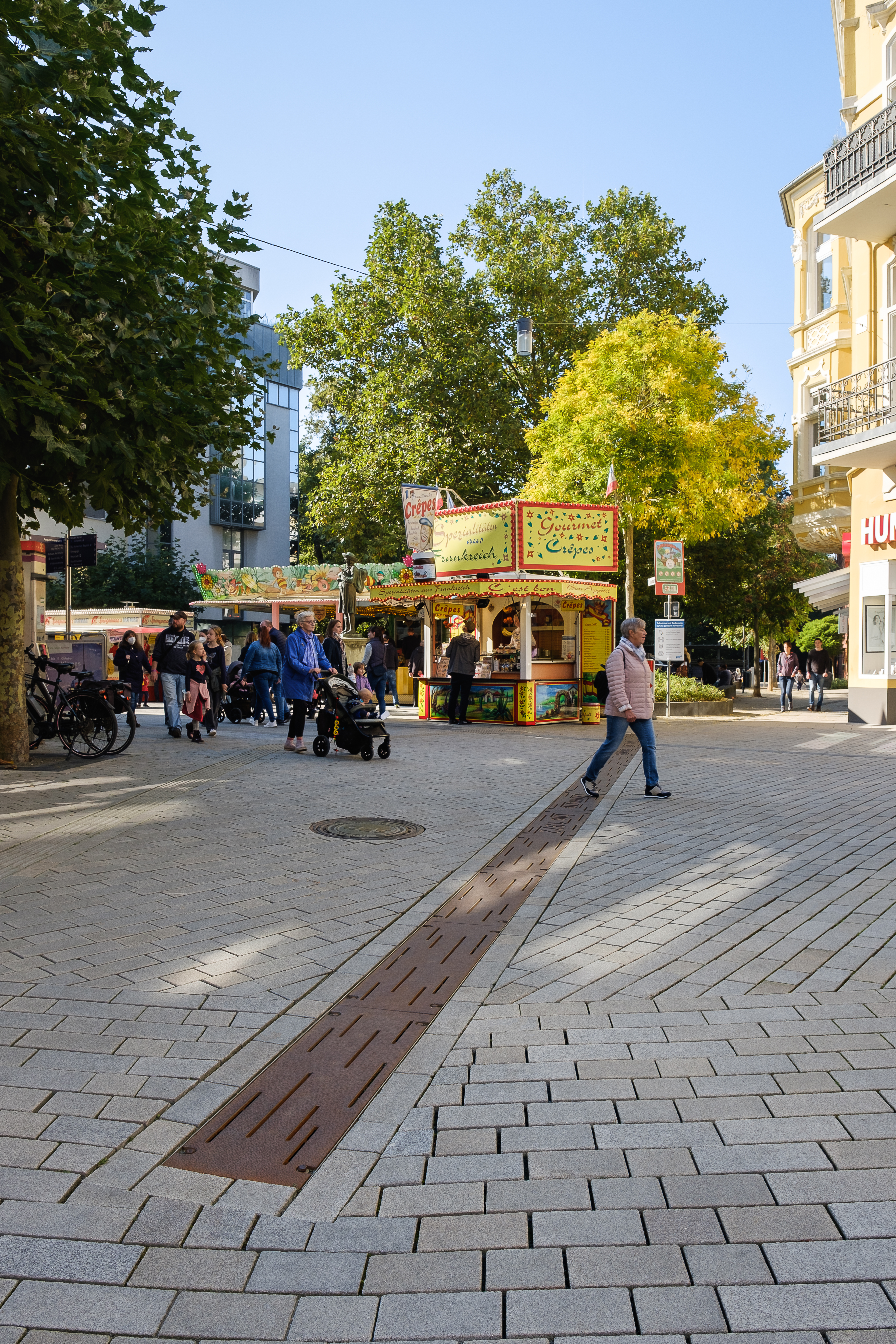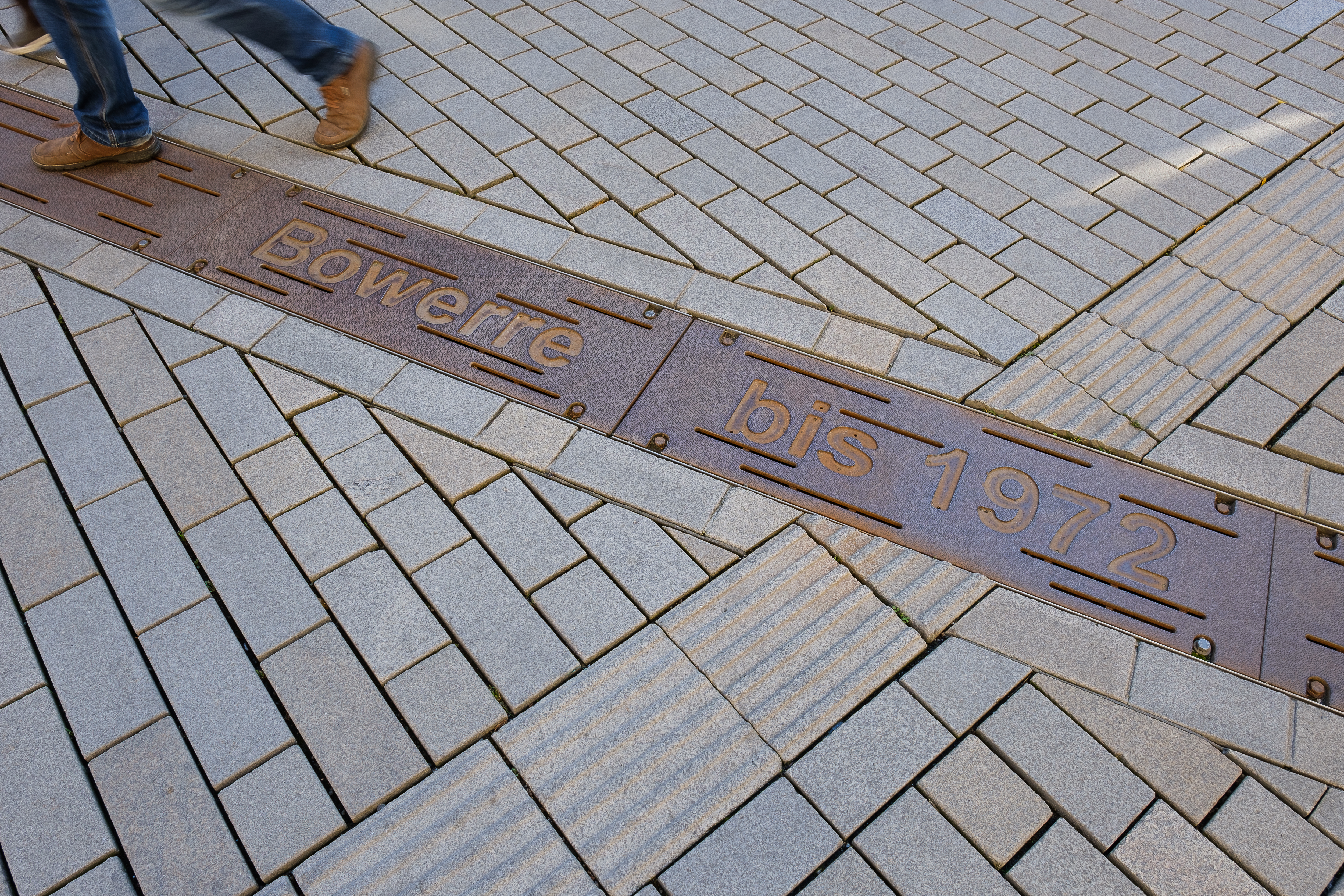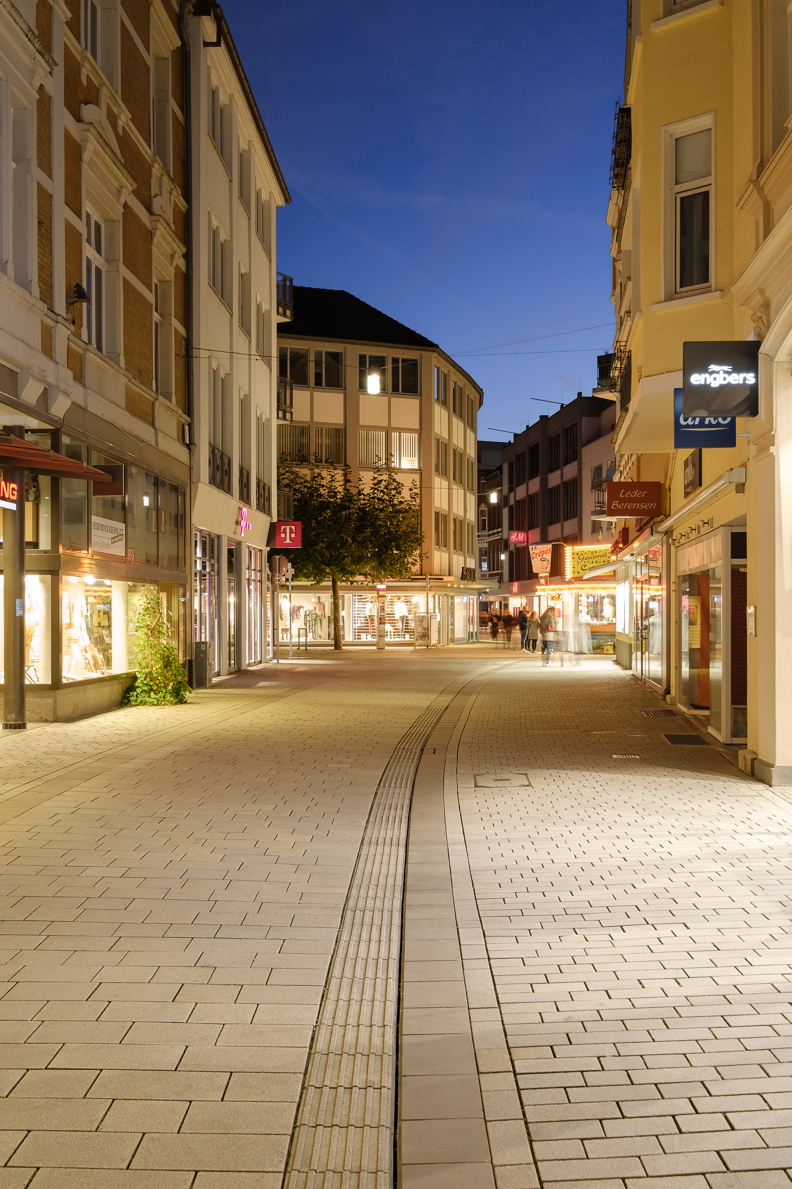 Die Aufteilung des Straßenraumes orientiert sich an vorgelagerten Bauabschnitten und bildet über zwei bündig in die Oberfläche eingelassene Streifen aus Grauwacke den historischen Straßenquerschnitt nach. „Fahrgasse“ und Gehbereiche wurden mit Pflastersteinen und -platten aus Granit, Aufenthaltsbereiche mit Pflastersteinen und -platten aus Grauwacke befestigt. Eine abgehängte Beleuchtung setzt Lichtakzente ohne die Nutzbarkeit des Straßenraumes einzuschränken. Partiell sorgen neue klimagerechte Straßenbäume für Schatten. Als besonderes Element zitiert eine in den Belag eingelassene gusseiserne Rinne den Verlauf des im Jahre 1972 verfüllten Flusses Bowerre.