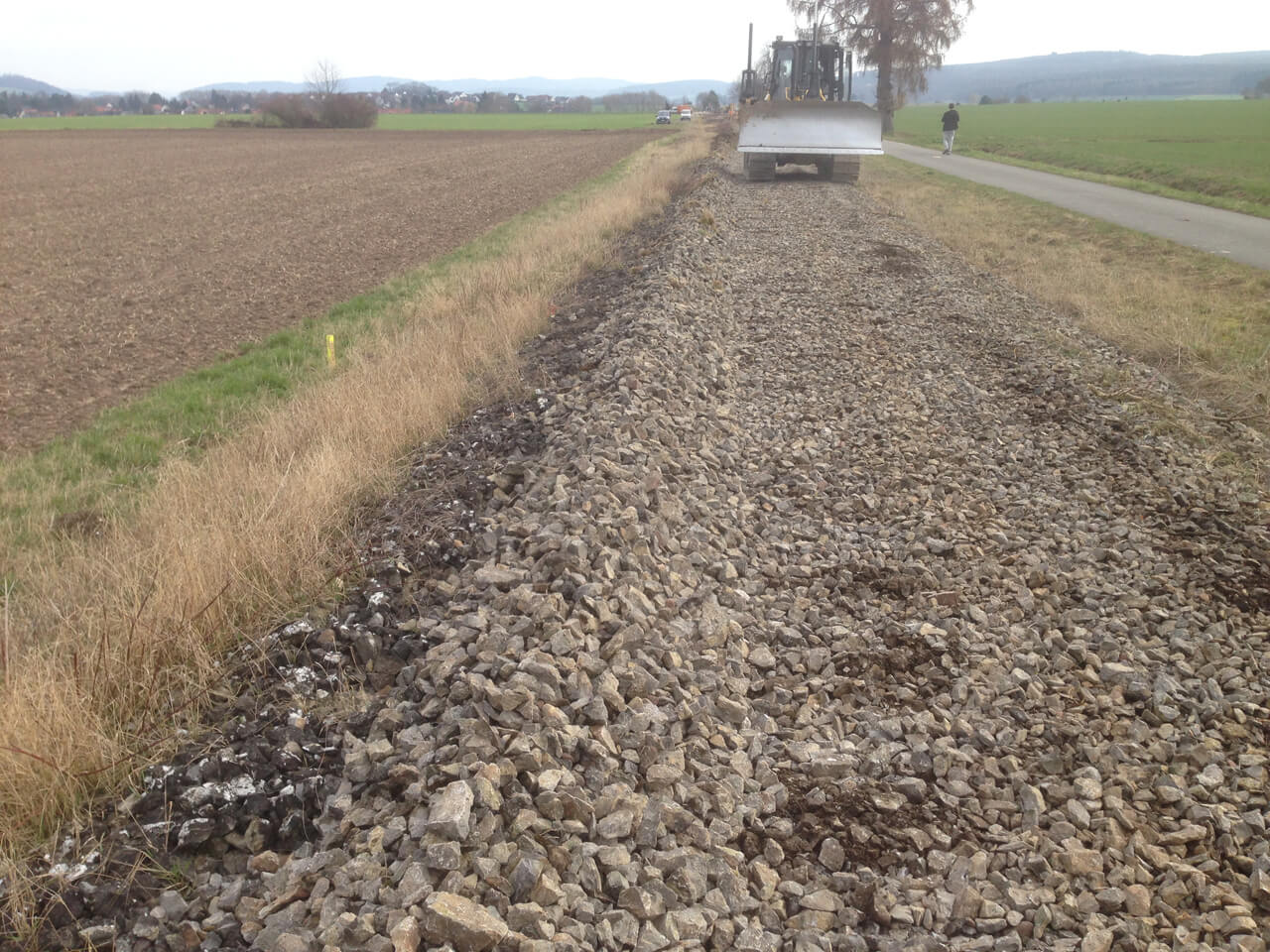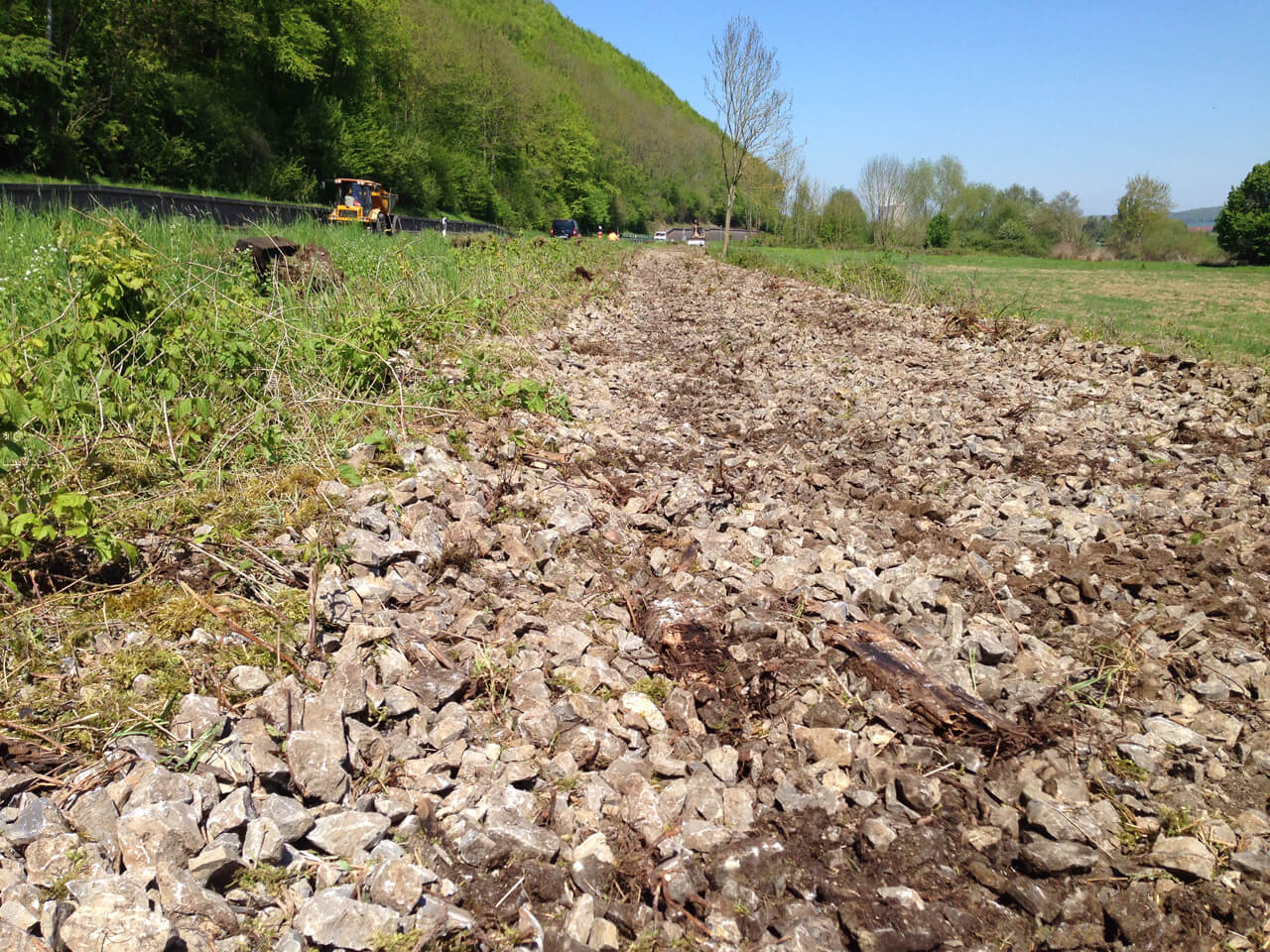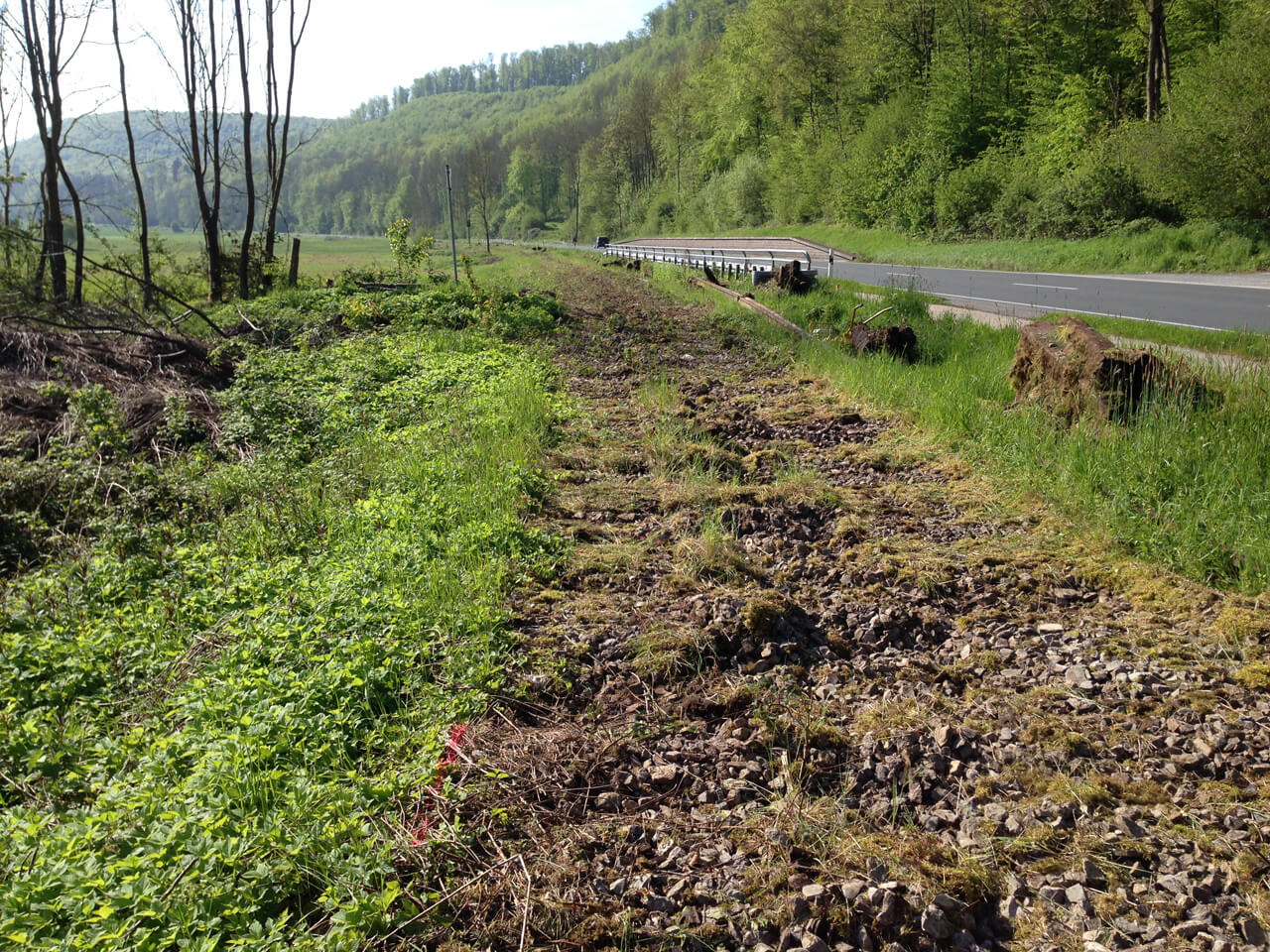 Im Rahmen der Ertüchtigung eines 15 Jahre ungenutzten Streckengleises zwischen Emmerthal und Bodenwerder entlang der Weser hat unser Büro die Umweltbaubegleitung durchgeführt. Zur Ertüchtigung und Wiederaufnahme des Bahnverkehrs auf der Strecke war die Entnahme der alten Schienen und Schwellen und das Abschieben und Vorbereiten des Schotterkörpers für die neuen Gleisjoche durchzuführen. Der Schotterkörper der Gleise und die angrenzenden Bereiche dienen als Lebensraum für Reptilien. Um die Konformität mit dem Artenschutzrecht zu gewährleisten, sind Voruntersuchungen zu möglichen Vorkommen der Zauneidechse und geeigneten und sensiblen Streckenabschnitten durchgeführt worden. Für die Bauausführung wurde in Abstimmung mit dem Bauträger und den zuständigen Naturschutzbehörden ein Ausführungskonzept erarbeitet, welches eine an die Standortverhältnisse und den Zeitrahmen flexible Ausführung zugelassen hat.