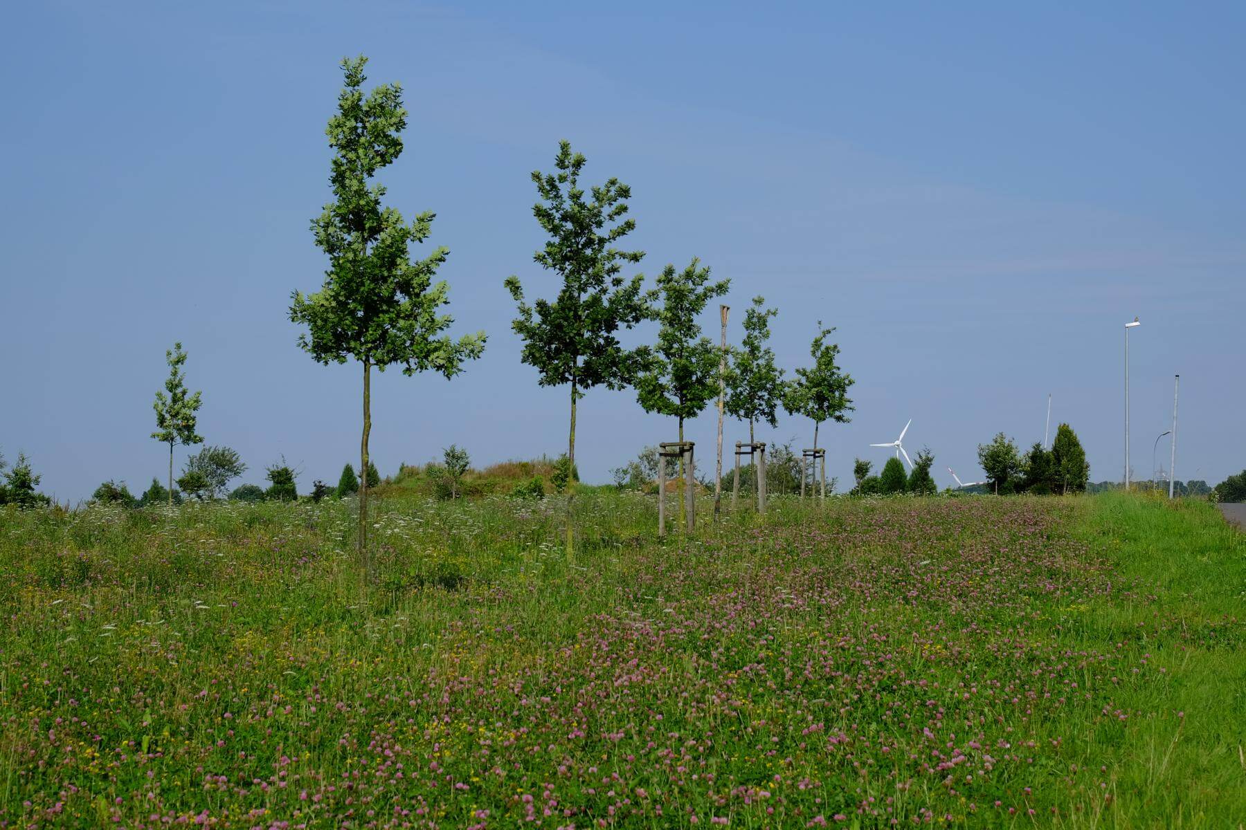 Die Gestaltungsmaßnahmen umfassen die Begrünung der überwiegend im Einschnitt geführten A 30 und B 61n mit Gehölzen einschließlich der Einbindung der kreuzenden Bundes- und Landesstraßen in das Landschaftsbild.