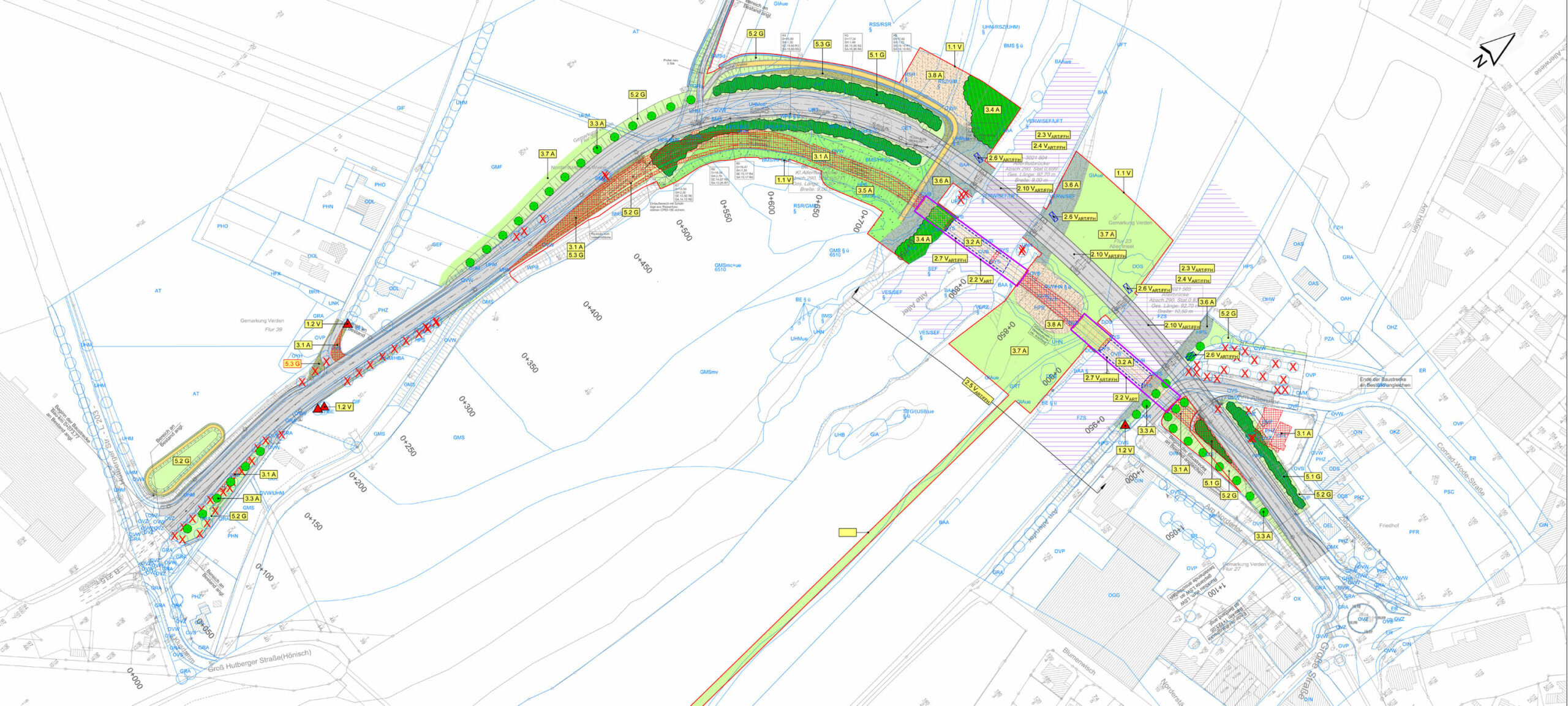 Im Auftrag der Niedersächsischen Landesbehörde für Straßenbau und Verkehr (Geschäftsbereich Verden) erarbeiteten wir die umweltfachlichen Beiträge für den Ersatzneubau der Allerbrücke im Zuge der B 215 im Stadtgebiet von Verden. Der Brückenneubau ist aufgrund verminderter Tragfähigkeit des vorhandenen Bauwerks erforderlich.
