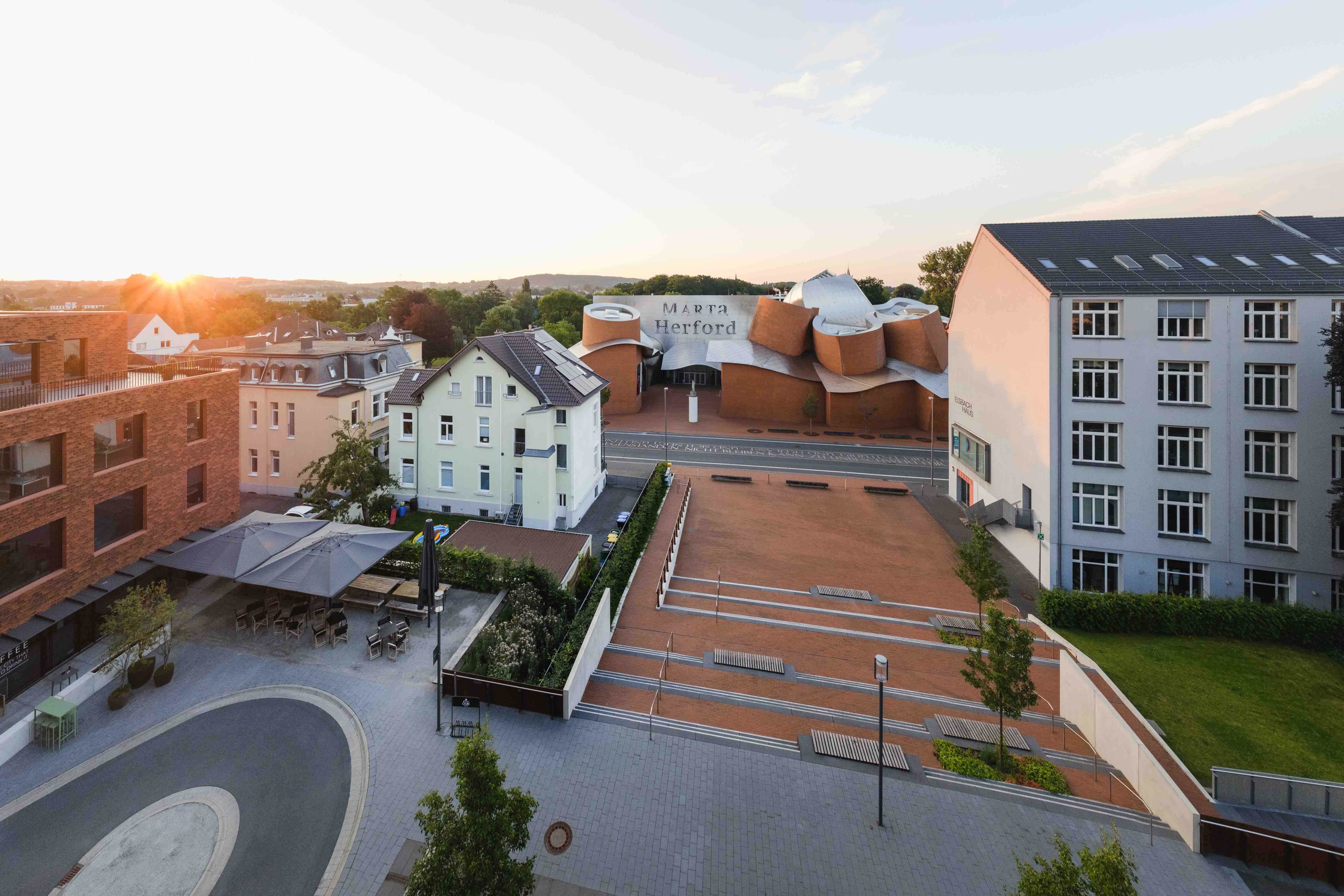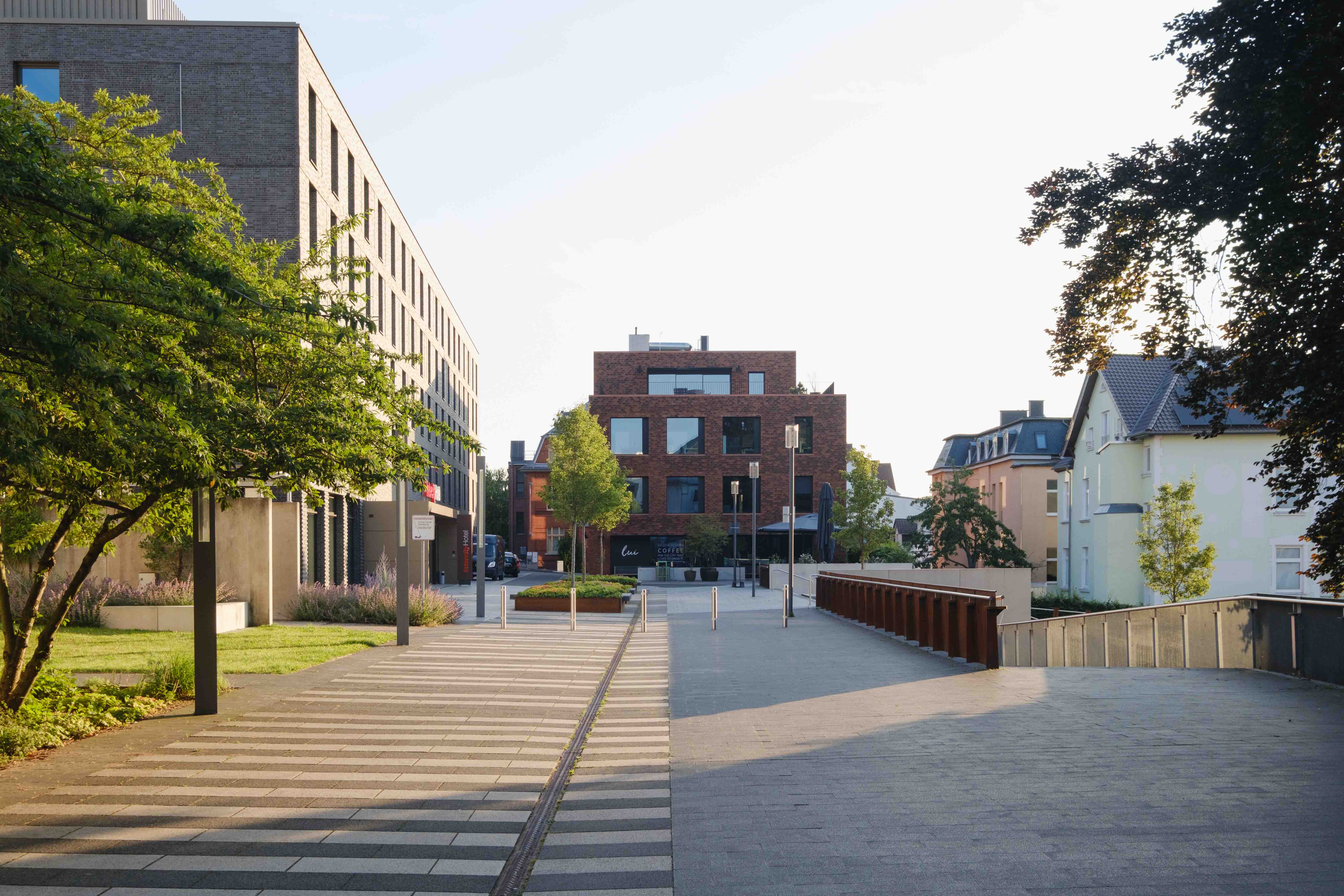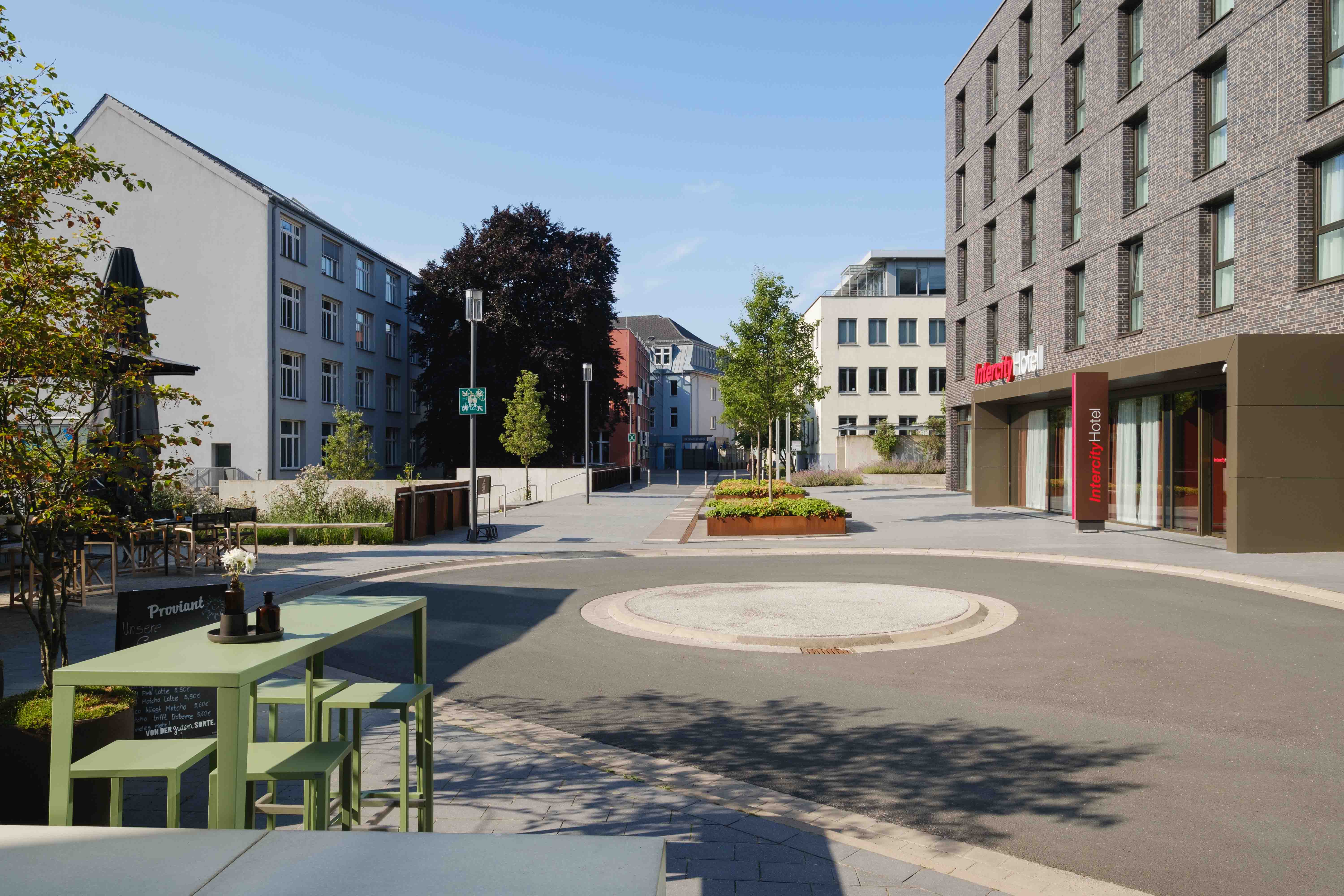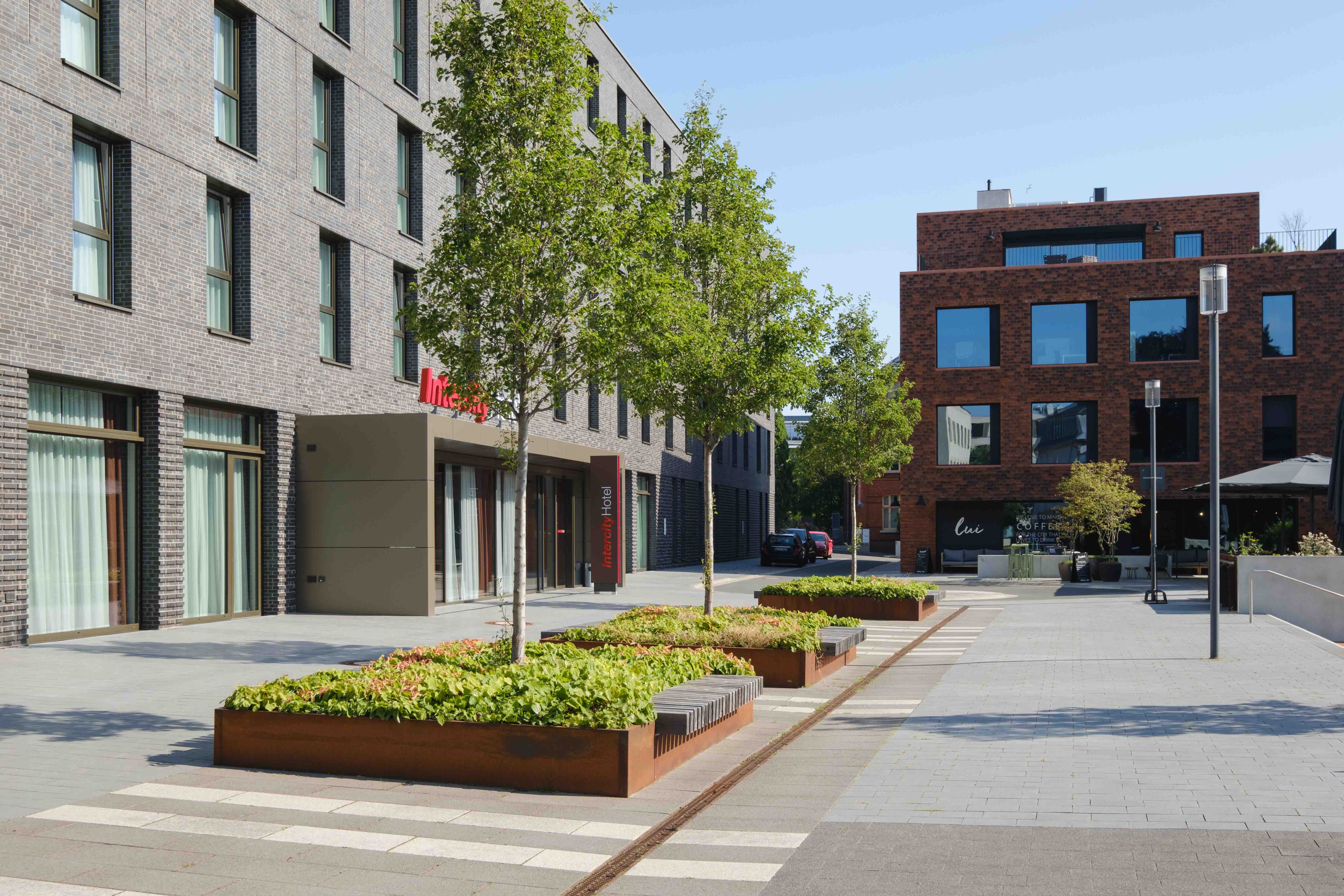 Der Neubau des Intercity Hotels befindet sich am Elsbach-Boulevard vis a vis des Museum MARTa; verbunden durch den im Zuge der Maßnahme ebenfalls neu gestalteten Käthe-Elsbach-Platz. Der Elsbach-Boulevard erhielt eine Verlängerung nach Norden. Hier wurde die Hotelvorfahrt integriert. Im Entreebereich des Hotels laden baumbestandene Hochbeete zu Aufenthalt mit Blick auf den markanten Museumsbau ein. Die Fuge zum westlich angrenzenden Parkhaus wurde rein vegetativ gestaltet.