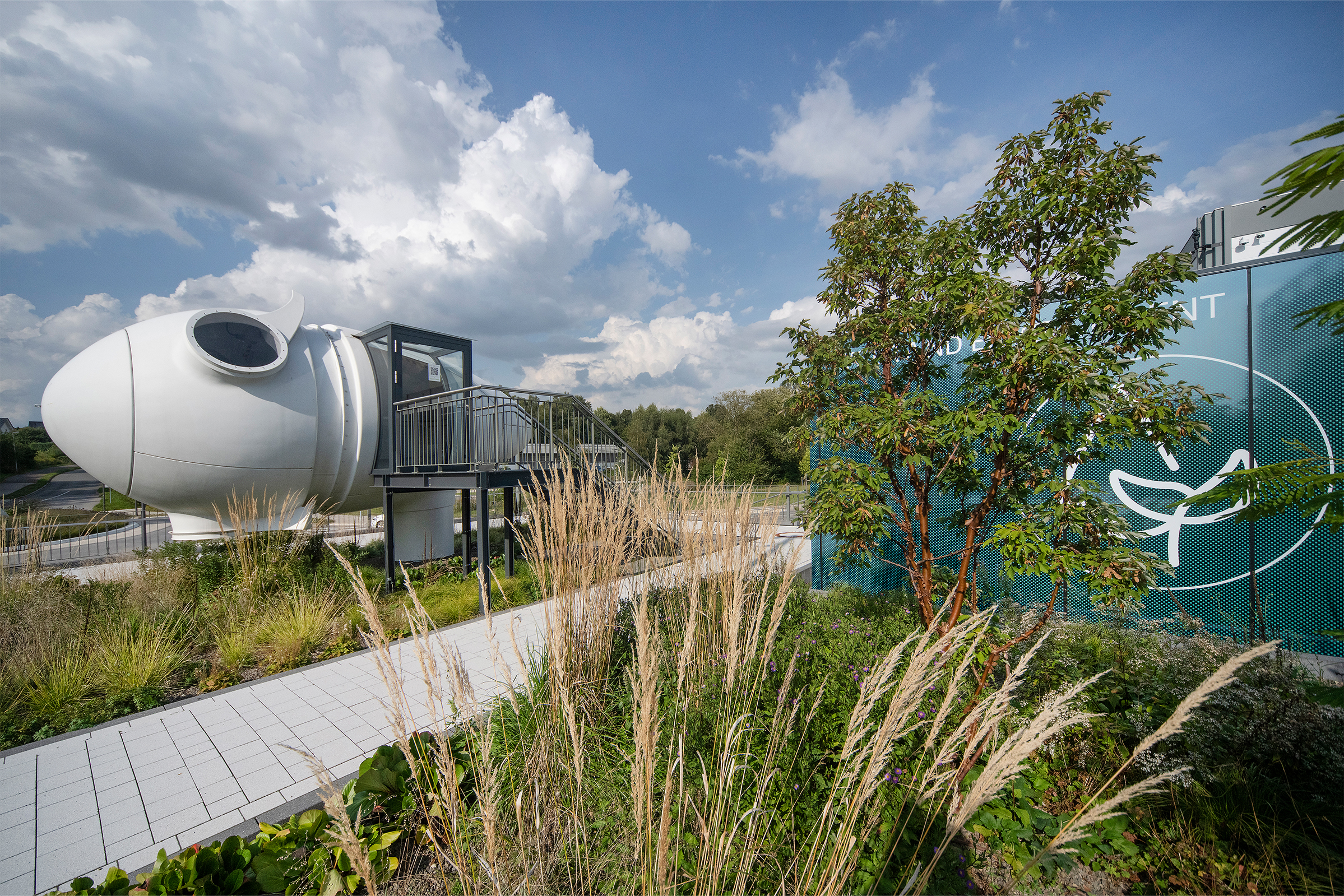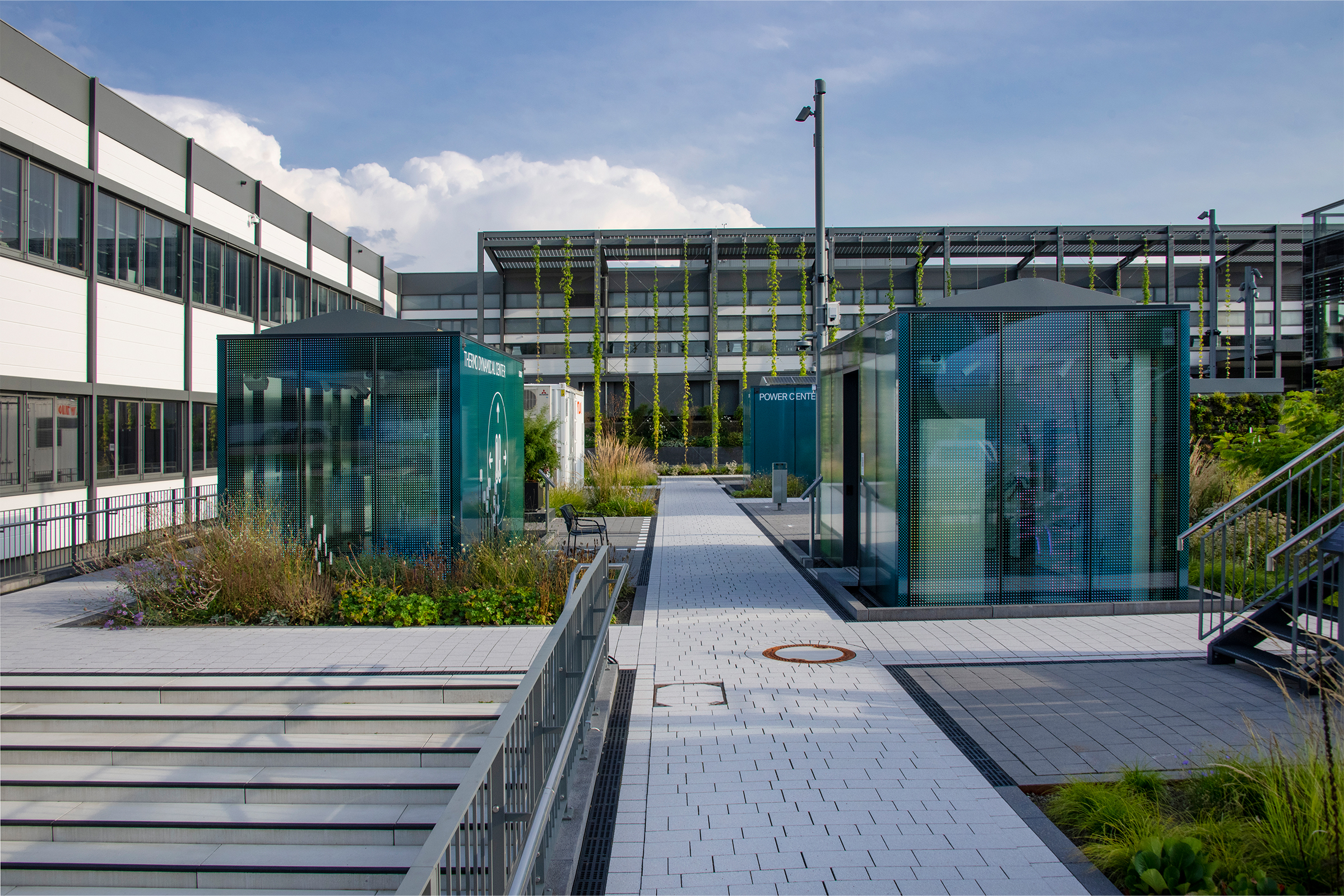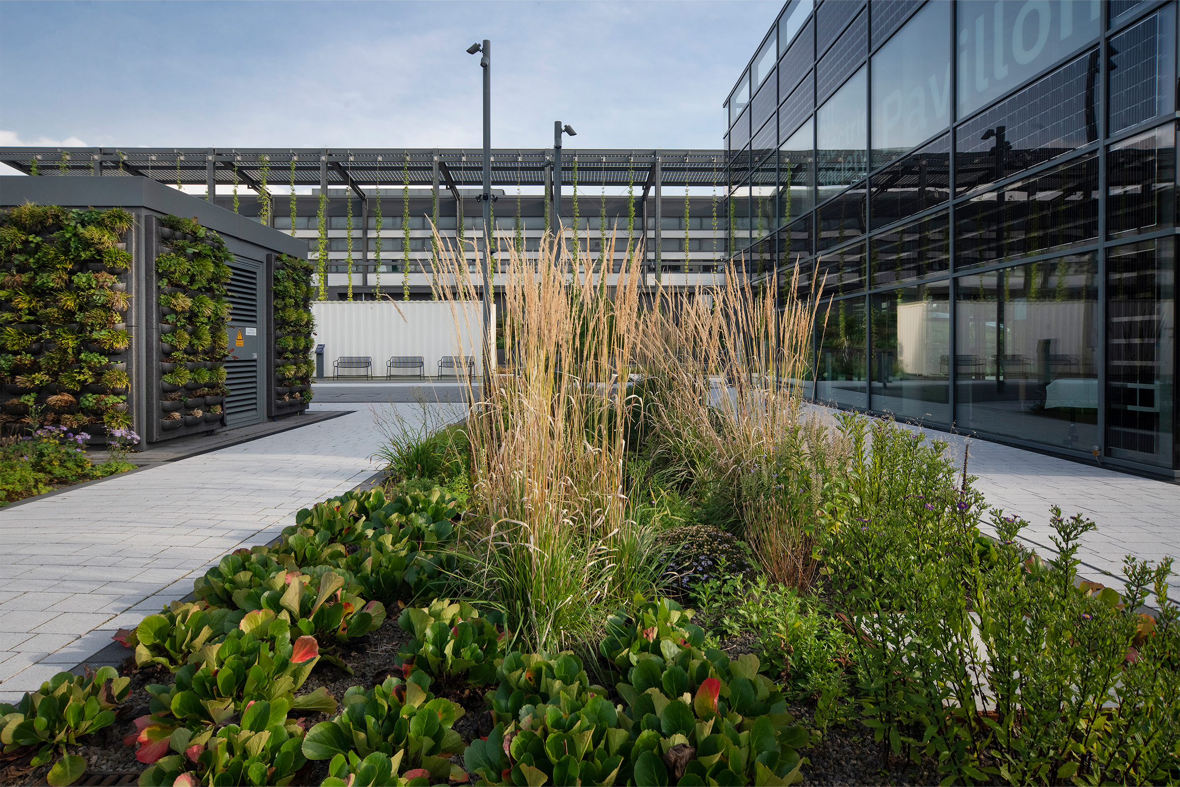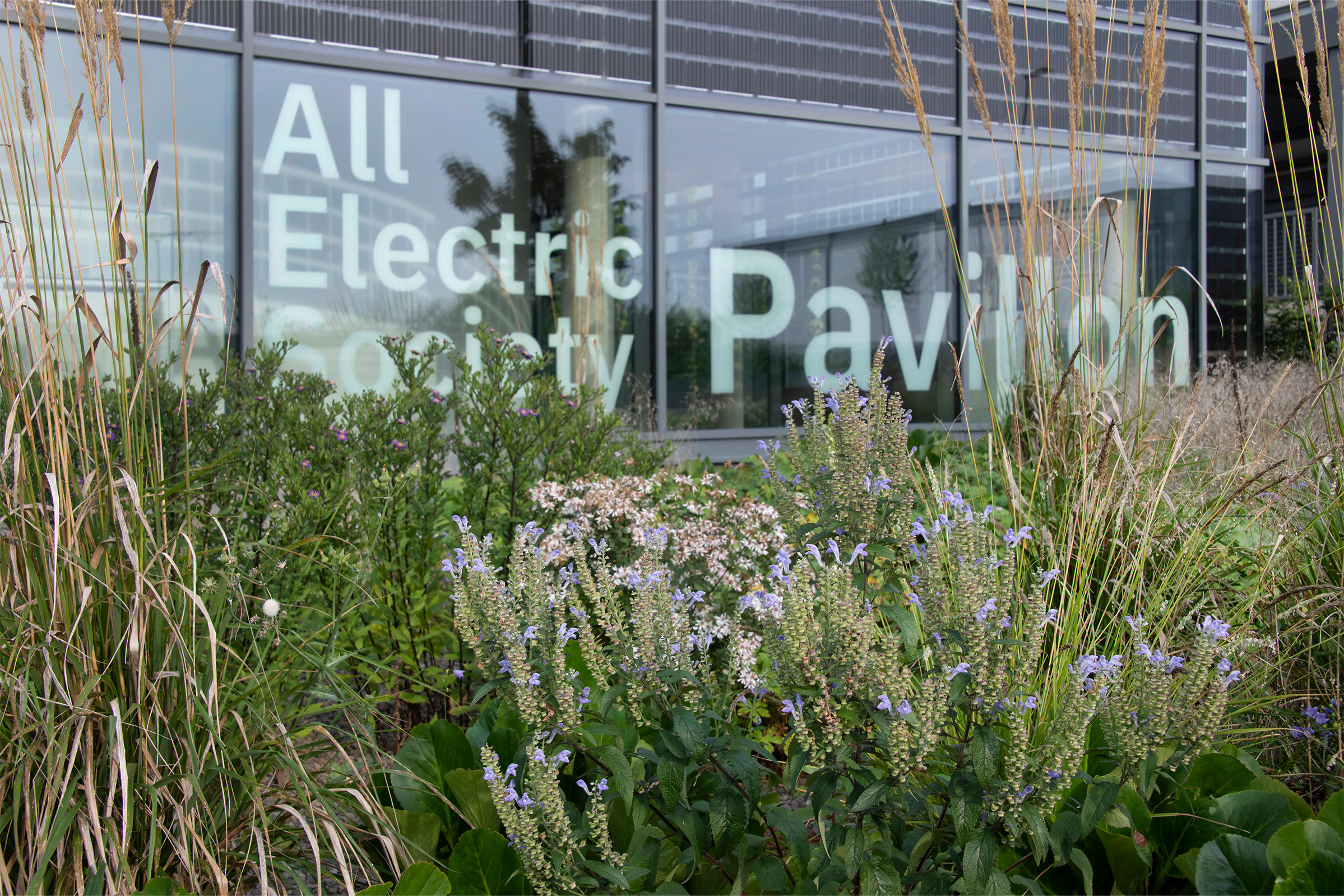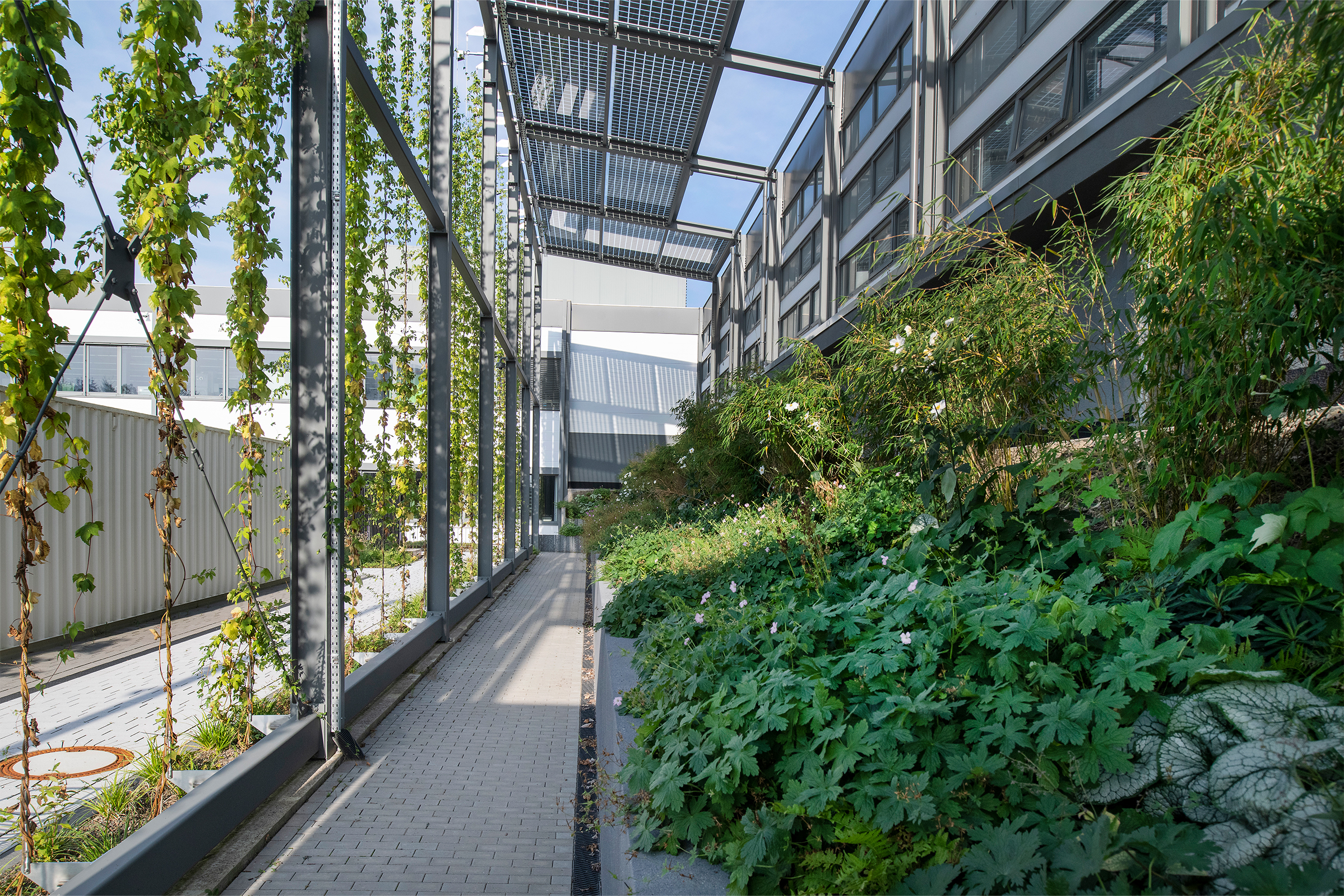 Die Ausstellungsfläche dient zur Präsentation des Zukunftsbildes der „All Electric Society“ – der Leitgedanke des Unternehmens Phoenix Contact. Der Park bettet die Ausstellungselemente funktional, gestalterisch und ökologisch hochwertig in ein. Klimaangepasste Staudenbeete und Kletterpflanzen an der neuen Stahlkonstruktion begrünen den Park und sorgen für Biodiversität. Abwasserbehandelnder Pflasterbelag und eine Solarpflasterfläche unterstützen den Nachhaltigkeitsgedanken. Im Kreisverkehr modellieren Cortenstahlbänder die bepflanzten Flächen und setzen den Solartree in Szene.