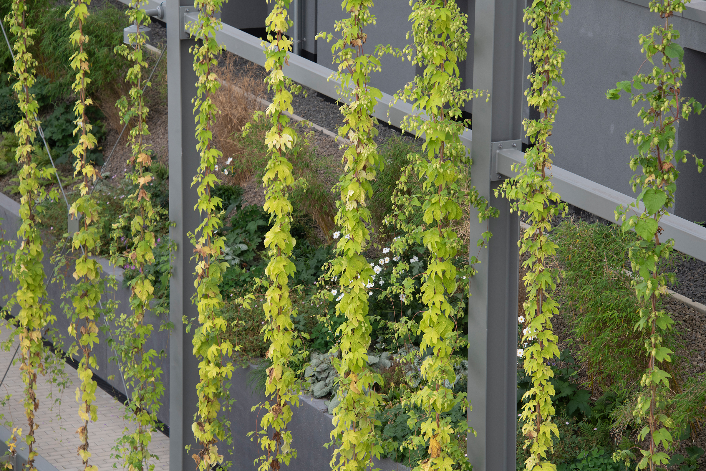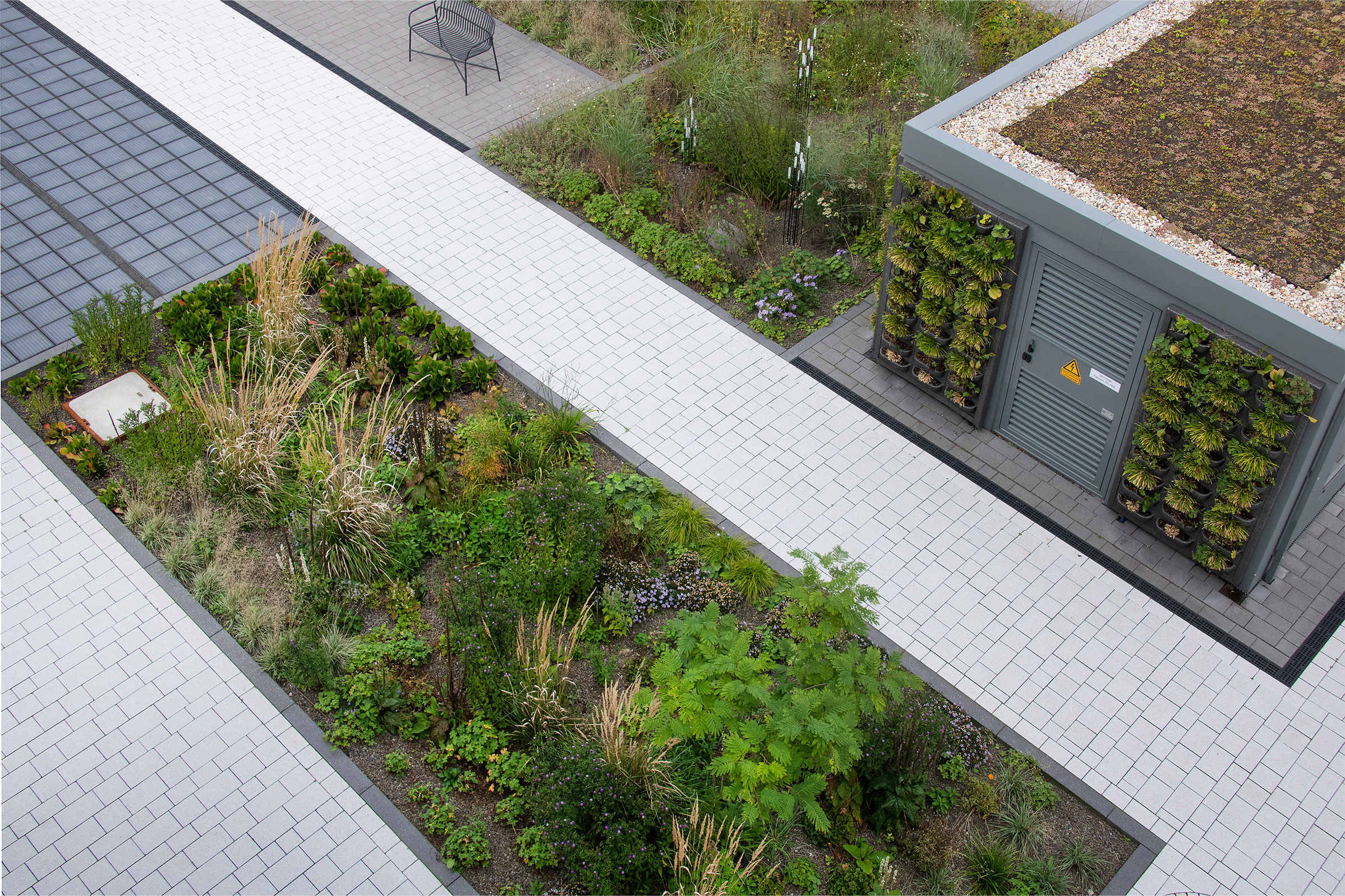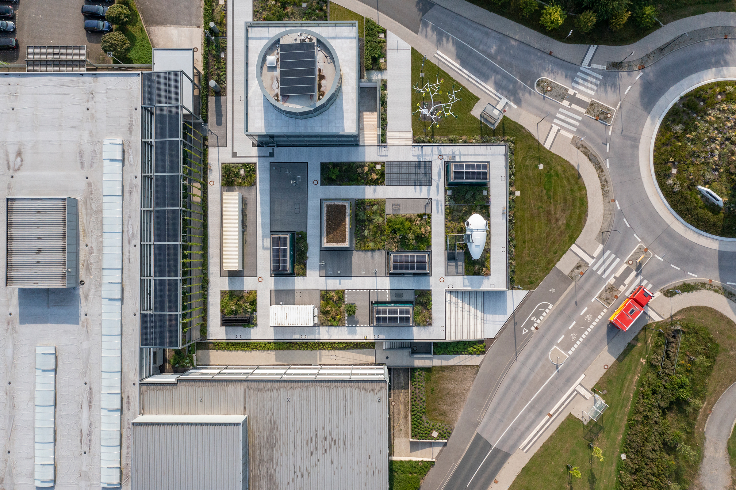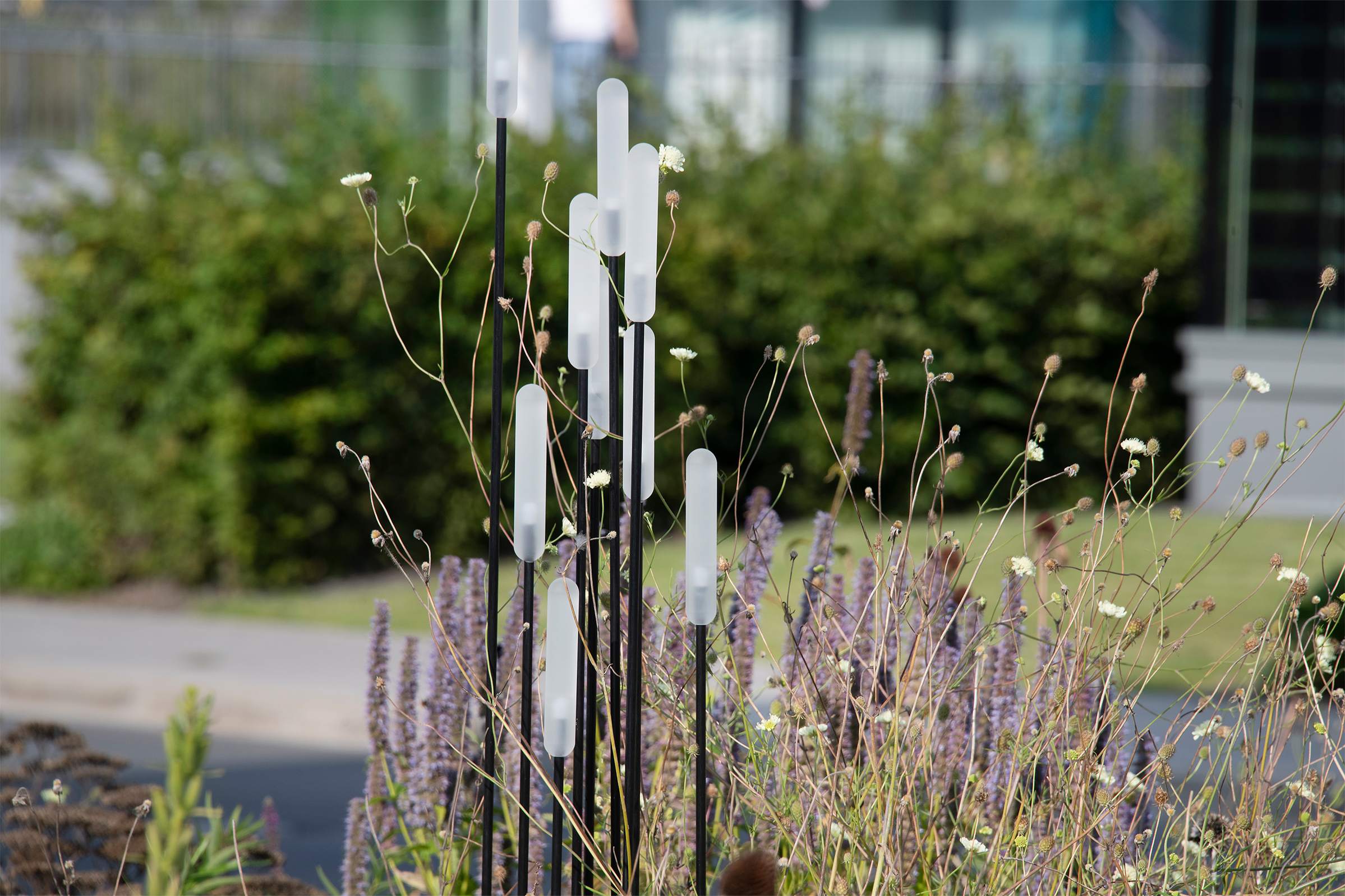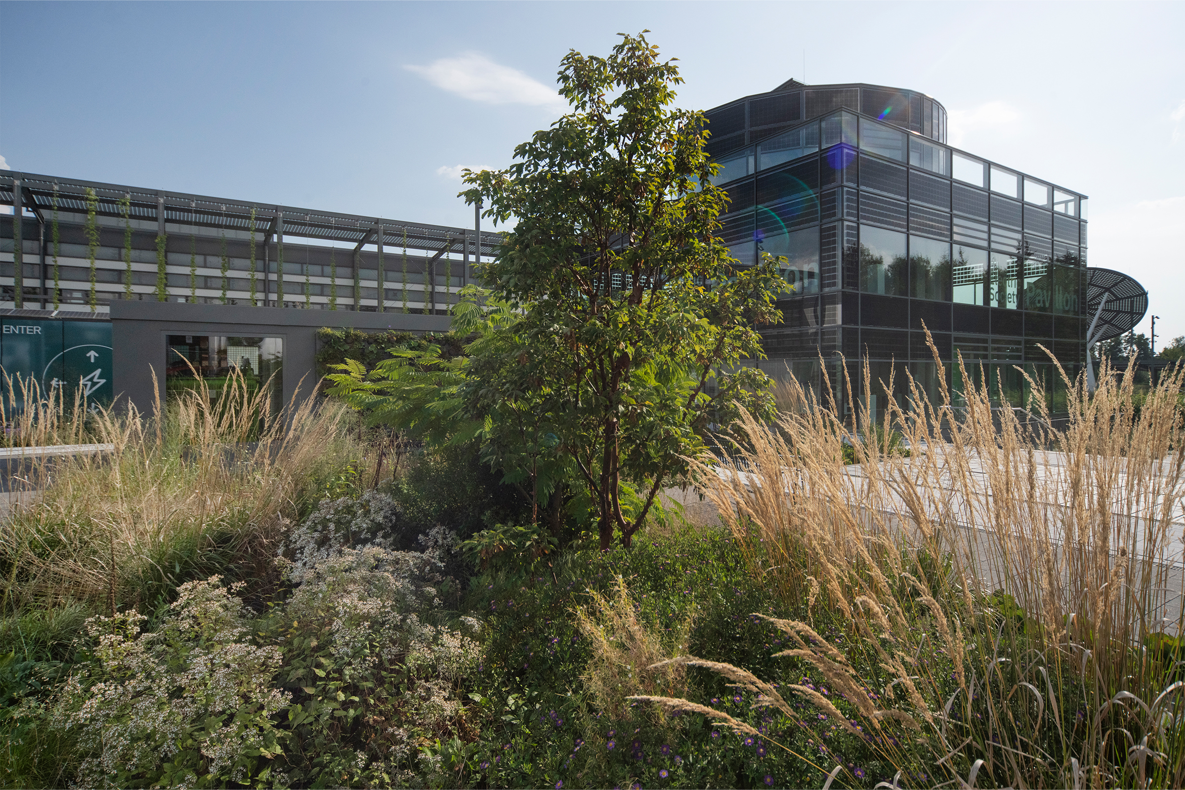 Die Ausstellungsfläche dient zur Präsentation des Zukunftsbildes der „All Electric Society“ – der Leitgedanke des Unternehmens Phoenix Contact. Der Park bettet die Ausstellungselemente funktional, gestalterisch und ökologisch hochwertig in ein. Klimaangepasste Staudenbeete und Kletterpflanzen an der neuen Stahlkonstruktion begrünen den Park und sorgen für Biodiversität. Abwasserbehandelnder Pflasterbelag und eine Solarpflasterfläche unterstützen den Nachhaltigkeitsgedanken. Im Kreisverkehr modellieren Cortenstahlbänder die bepflanzten Flächen und setzen den Solartree in Szene.