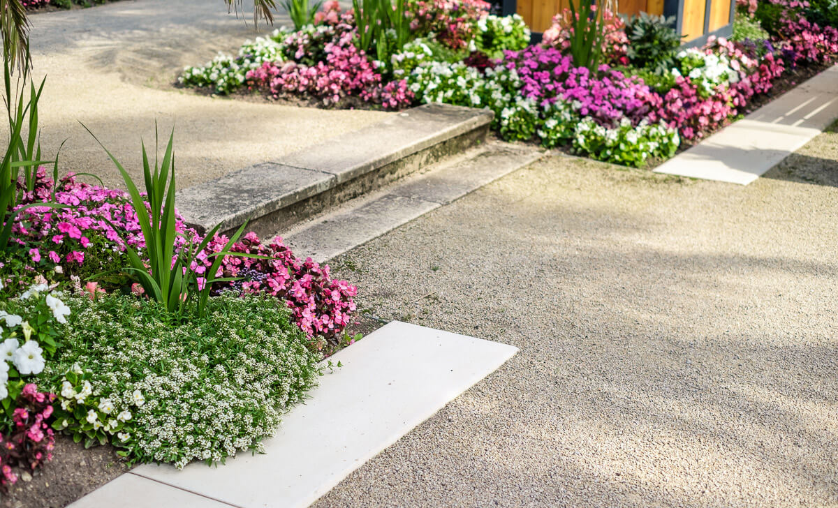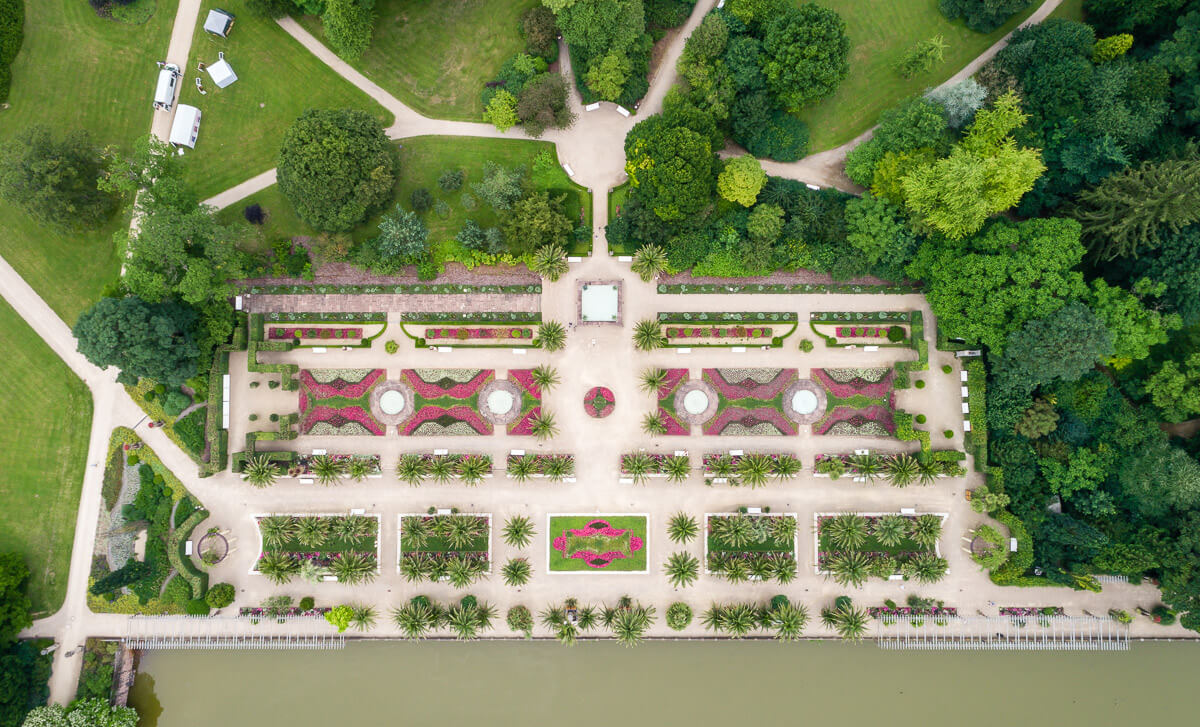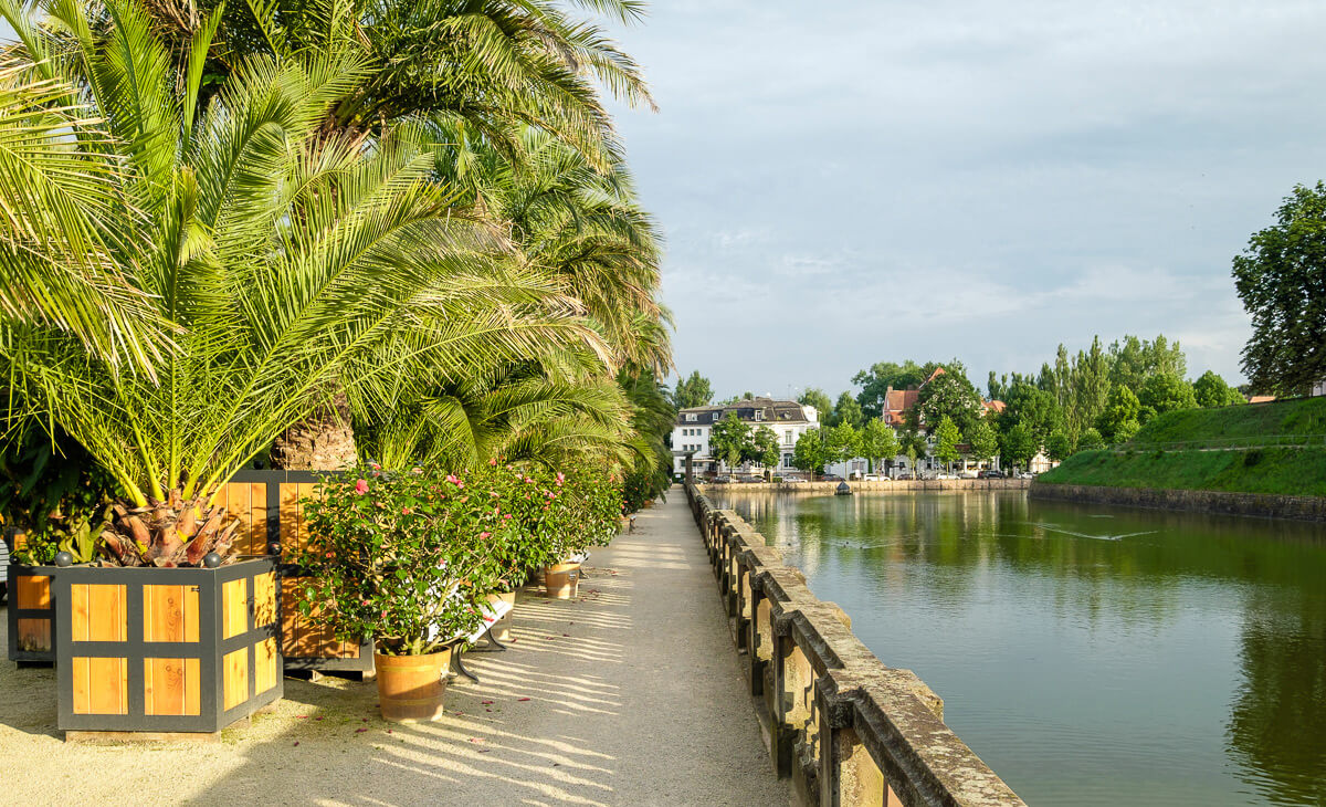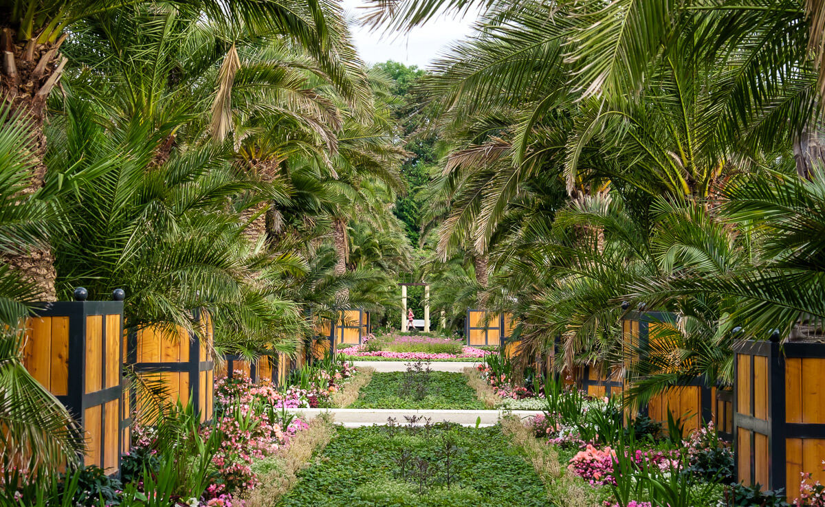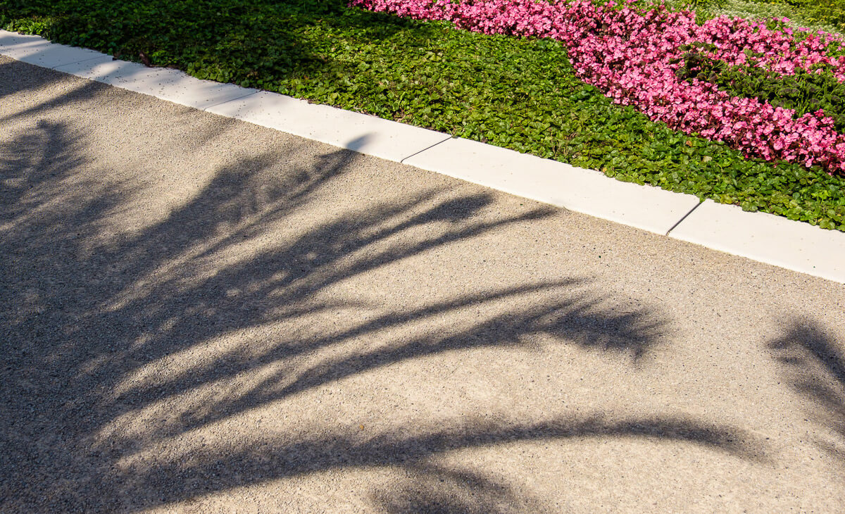 Die Beete im Palmengarten des Kurparks Bad Pyrmont wurden in enger Abstimmung mit der Denkmalbehörde partiell neu arrondiert. Sie erhielten zudem eine Einfassung aus massiven Sonderbauteilen aus Sichtbeton, die es dem Staatsbad ermöglicht, die Palmen mit dem Gabelstapler ohne Kantenschädigung in den Beeten abzustellen.