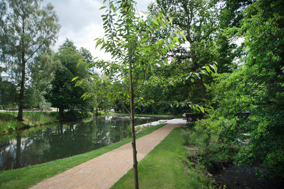 Durch die Entnahme von Sträuchern wurden Sichtachsen freigestellt und die Gewässer zugänglich gemacht. Kinder können somit wieder am Teich und am Hillbach spielen.