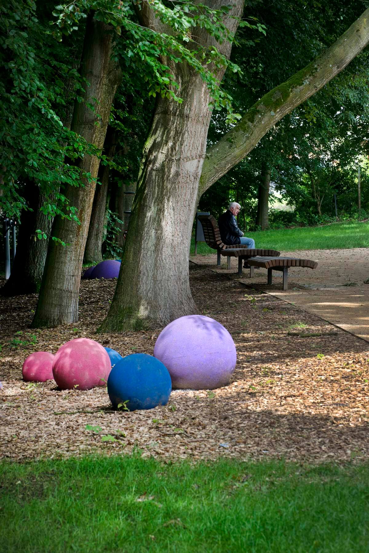 Der Mehrgenerationenpark selbst ist sehr zurückhaltend gestaltet. Mit wenigen gestalterischen Mitteln wurden die vorhandenen natürlichen Potenziale der Grünfläche genutzt.