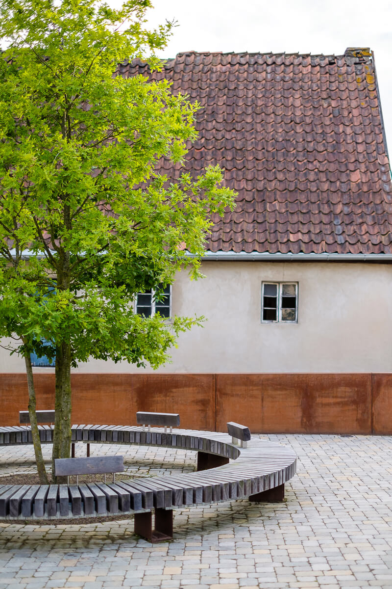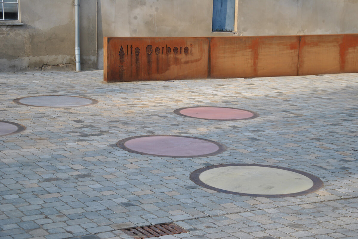 Der Gerbereiplatz soll sich zu einem robusten, aber hochwertig gestalteten Möglichkeitsraum entwickeln. Er soll eine ruhige, dienende Vorlage für das Museum werden. Gegenüber der in Teilbereichen undefiniert erscheinenden Umgebung wird er sich deutlich durch eine sich zurücknehmende, einheitliche Gestaltung abgrenzen und somit FREIRAUM schaffen. Er wird mit signifikanten Gestaltelementen wie Baumsolitär, raumprägender Rundbank, Cortenstahlmauer, Pflasterung und auf die Historie Bezug nehmender Elemente, die an die, vor dem Gebäude liegenden, Gerberfässer erinnern sollen, ausgestattet. Das Zusammenspiel sämtlicher Gestaltelemente wird der Freianlage einen starken und unverwechselbaren Charakter und Wiedererkennungswert verleihen.
