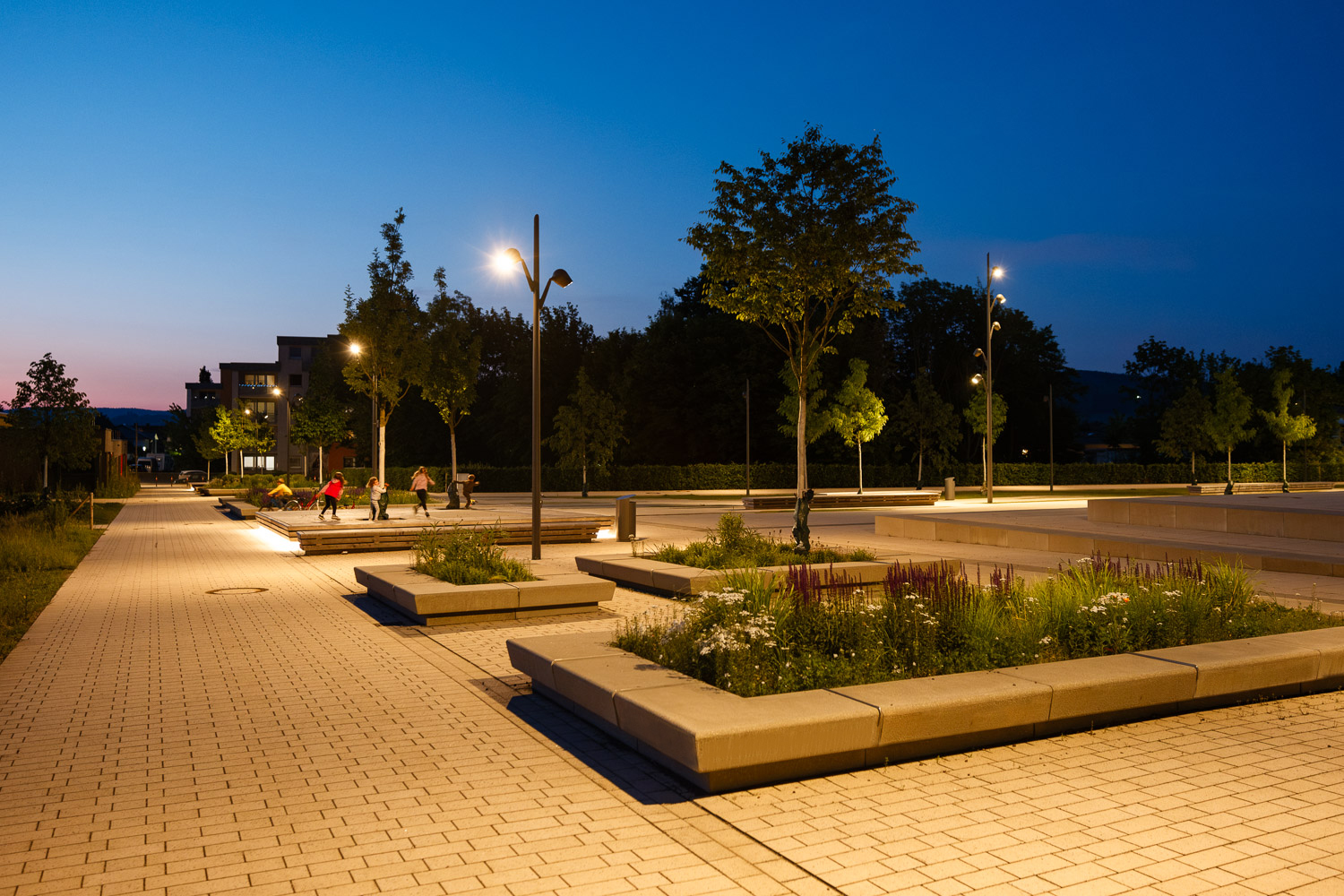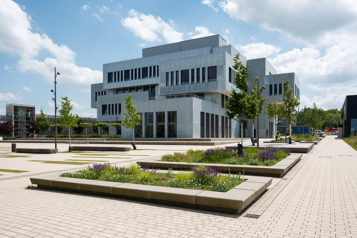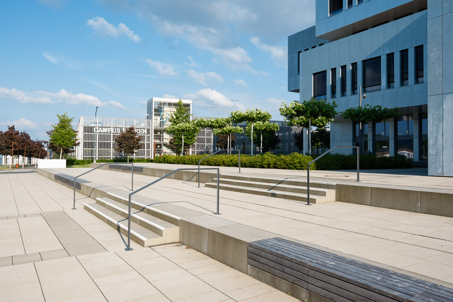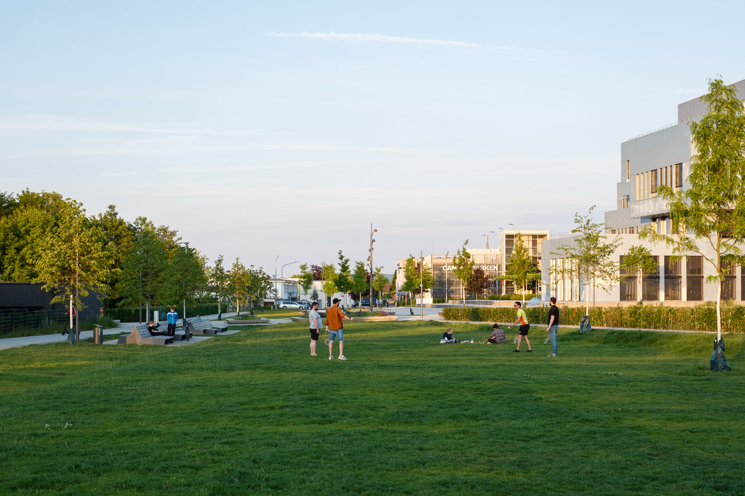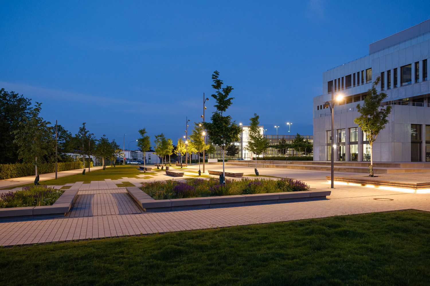 In Anlehnung an die städtebauliche Masterplanung wurde das gesamte Gelände des Innovation Campus neu strukturiert. Die isolierte Lage im Stadtraum wurde aufgebrochen. Zahlreiche – auch boulevardähnlich ausgebildete Wege – vernetzen das Gelände mit den umliegenden Wohngebieten, der Hochschule und der Altstadt. Entlang der Wege und im Umfeld des neuen Innovation Spin bieten vielfältig strukturierte Freiflächen unzählige Möglichkeiten zur Bewegung, zum Aufenthalt und zum Sport im Grünen; im Alltag, aber auch bei großen Veranstaltungen im universitären und städtischen Rahmen. Der Versiegelungsgrad wurde so gering wie möglich gehalten.