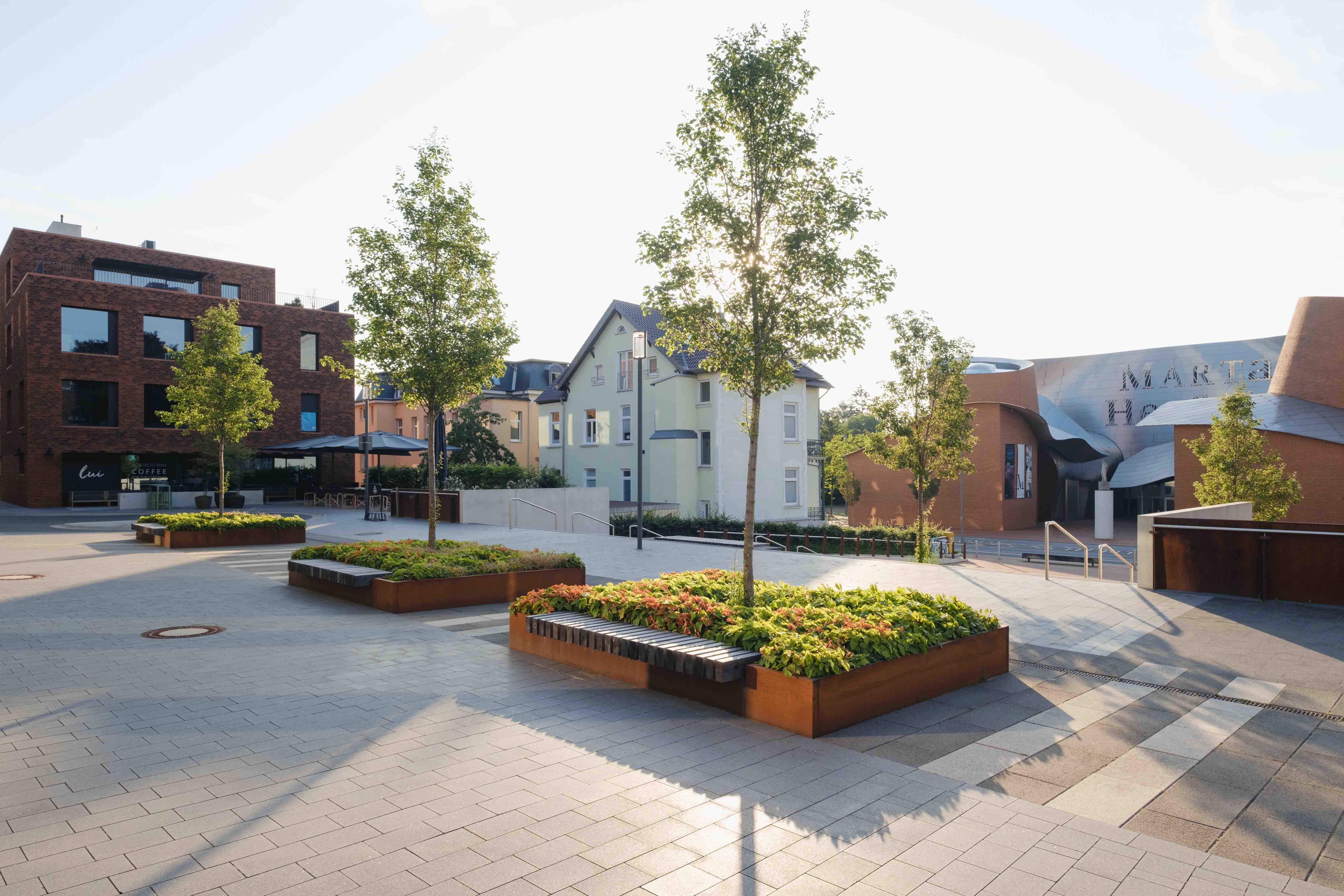 Im Herforder MARTa-Viertel wurde im Zuge des Neubaus des Intercity Hotels am Elsbach-Boulevard auch der Käthe-Elsbach-Platz grundhaft umgebaut. Zur Aufwertung der Verbindung zwischen Elsbach-Boulevard und dem Museum MARTa wurde eine trennende Stützwand rückgebaut und der Stadtraum durch eine großzügige Sitzstufenanlage gestalterisch aufgewertet und nutzbar gemacht. Zwei Rampen betten sich wie selbstverständlich in die Sitzstufenanlage ein und bieten nunmehr auch eine barrierearme Möglichkeit, den Höhenversprung zu überwinden.