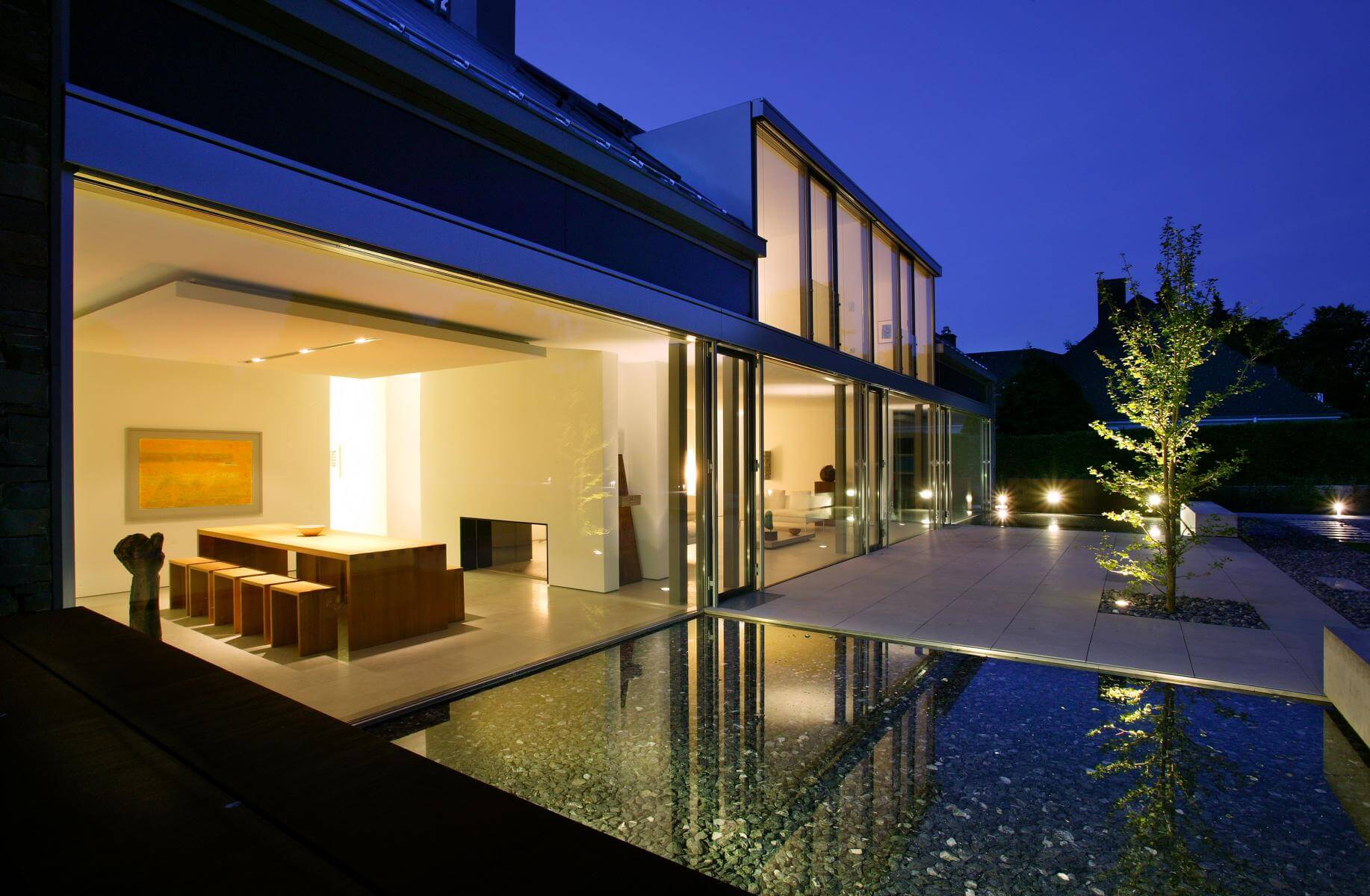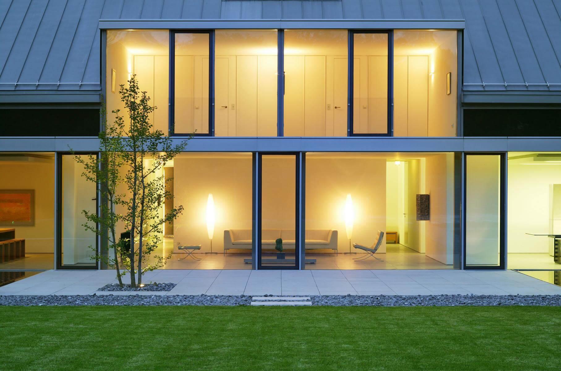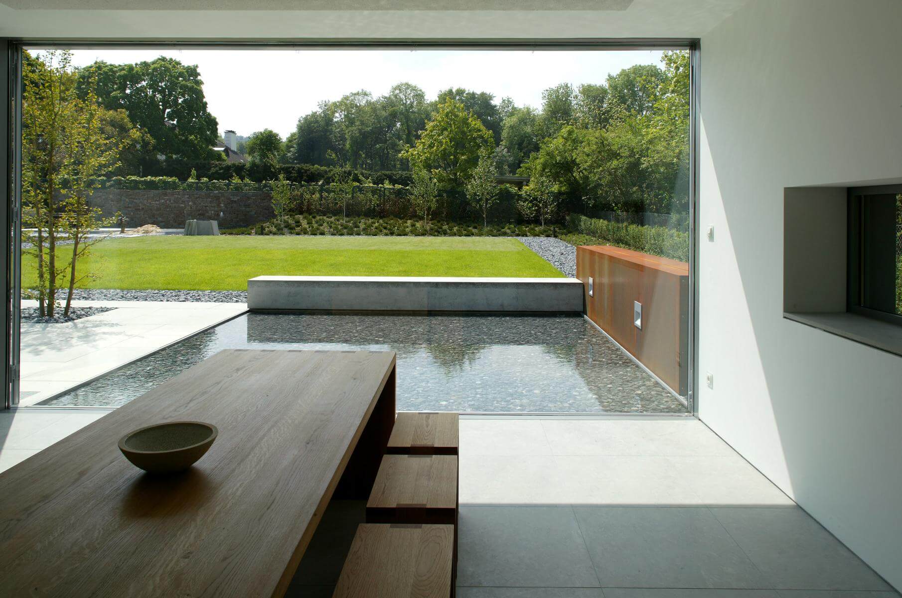 Die Gestaltung dieses Gartens spiegelt den modernen und funktionellen Charakter des Hauses wieder.